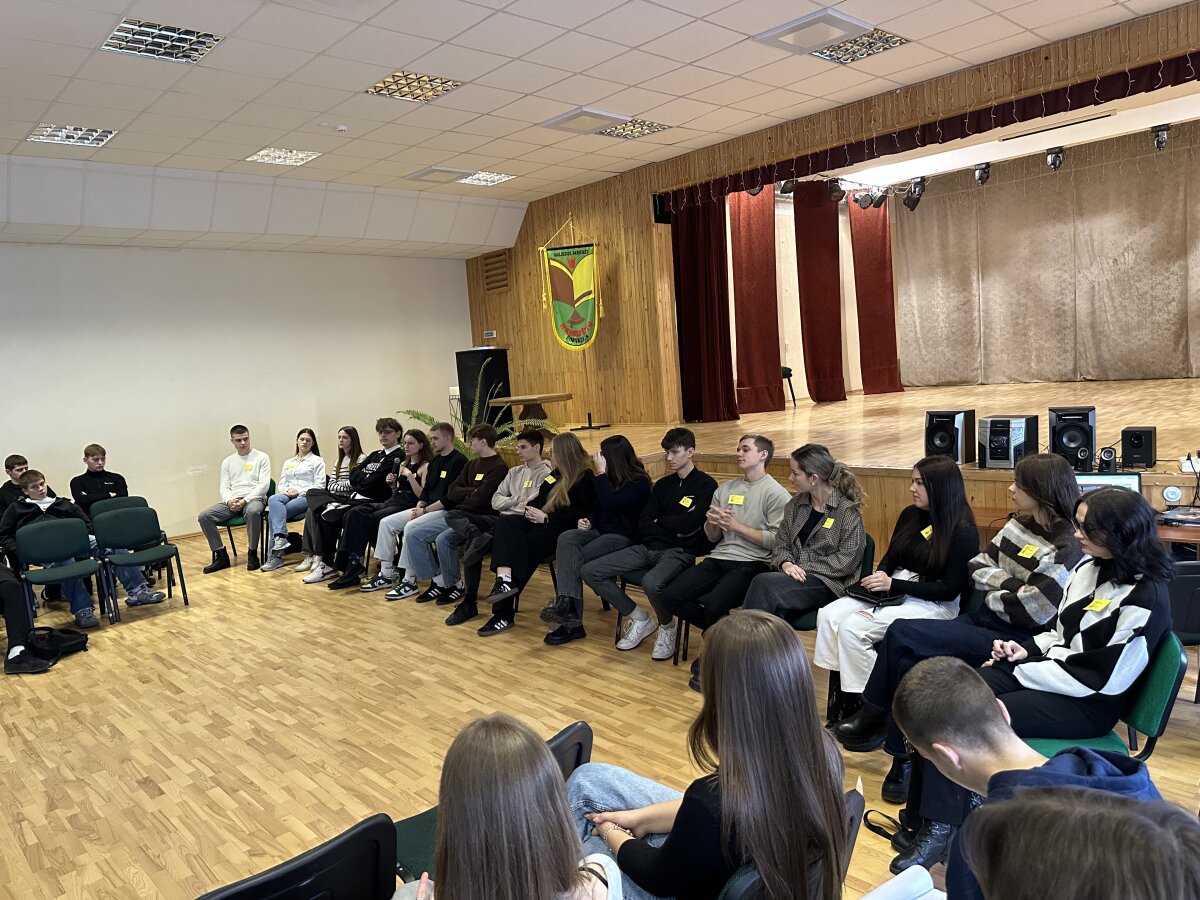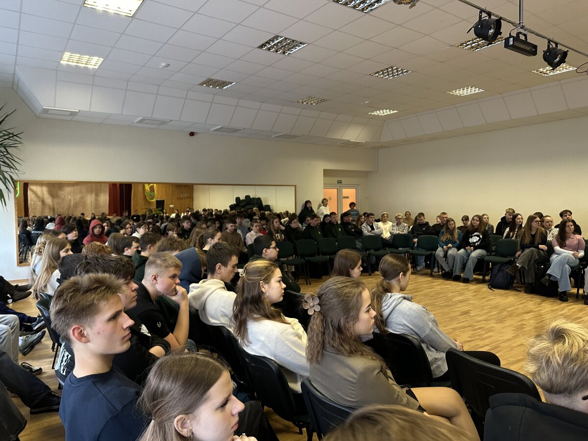 2025 m. lapkričio 20 d. net 85 I–II gimnazijos klasių mokiniai kartu su mokytojo...