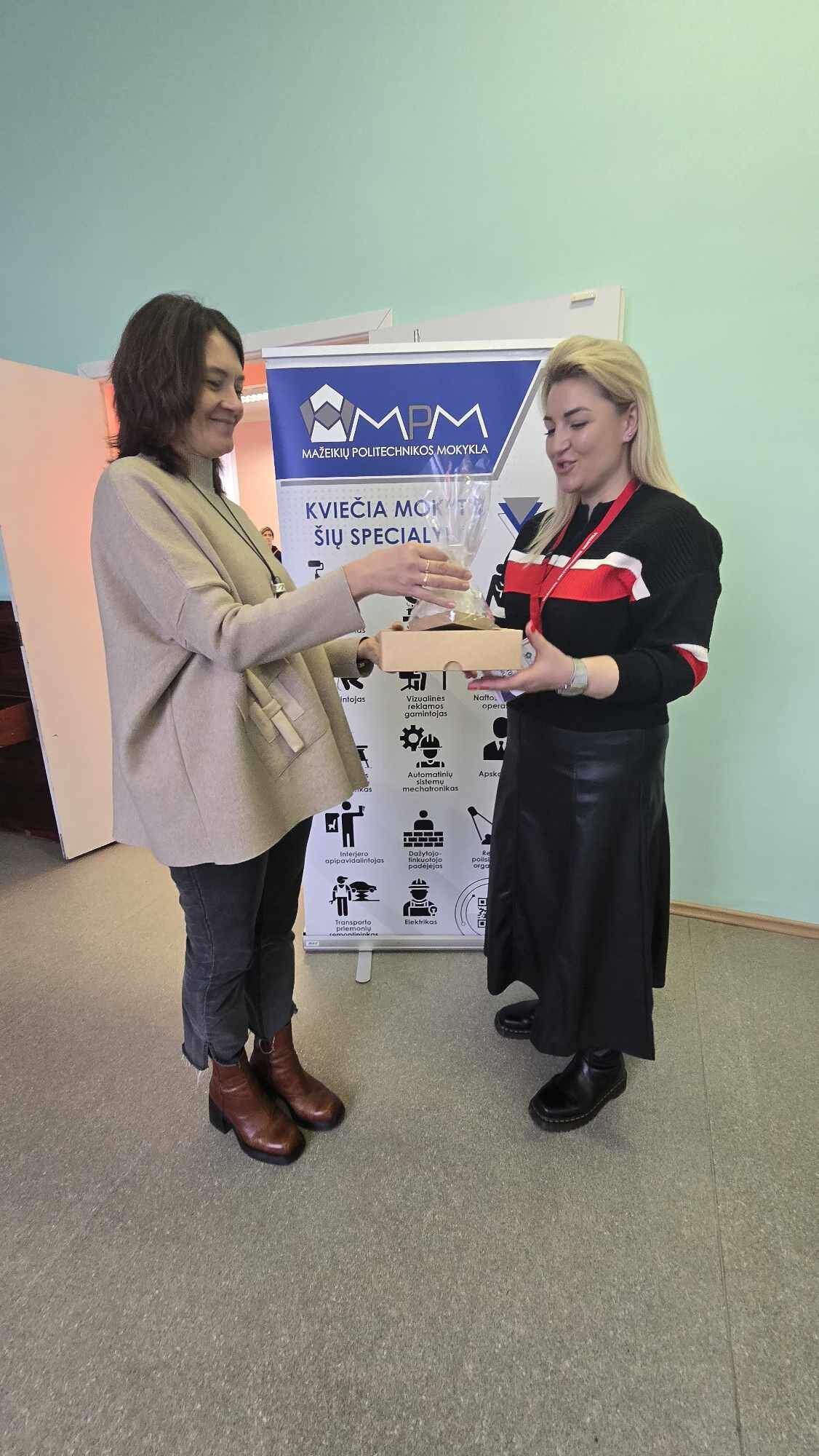 Renginio pabaigoje Akmenės rajono švietimo pagalbos tarnybos direktorė Daiva Lunkevičienė nuoširdžiai padėkojo dalyvavusioms mokymo įstaigoms už skirtą laiką, profesionalumą ir prasmingą indėlį į mokinių karjeros ugdymą. Atsidėkodama ji įteikė Švietimo pagalbos tarnybos padėkos dovanėles, simboliškai įprasminančias bendradarbiavimą ir siekį kartu kurti mokinių karjeros sėkmę.