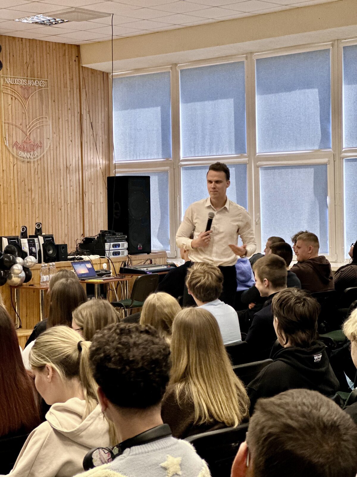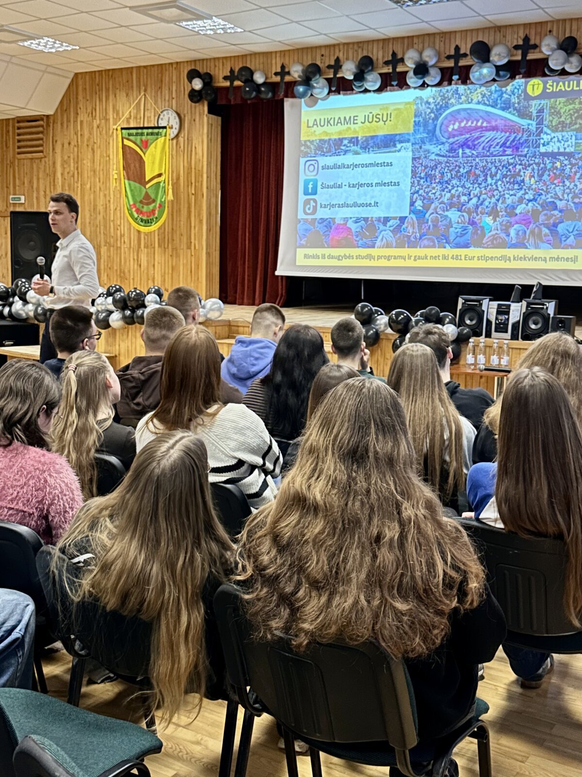 Vicemeras pristatė Šiaulių miestą kaip jaunimui patrauklią vietą studijuoti, dirbti ir kurti ateitį. Mokiniai sužinojo apie studijų programas Šiaulių aukštosiose mokyklose, profesinio mokymo galimybes, stipendijas bei jaunimo įsidarbinimo perspektyvas. Taip pat buvo aptartos finansinės paskatos jauniems specialistams, parama jaunimo verslo projektams ir galimybės įgyvendinti savo idėjas.