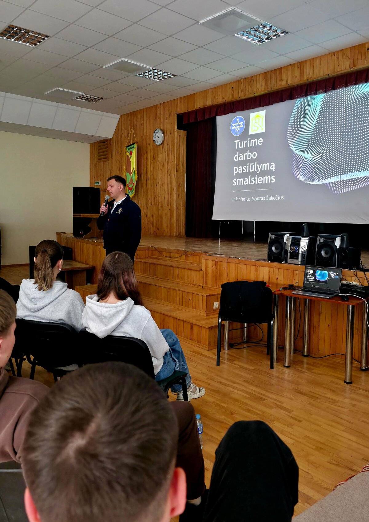Susitikimo metu svečias pristatė statybos inžinieriaus profesiją, pasidalijo savo patirtimi, papasakojo apie įdomiausius projektus ir kasdienius darbo iššūkius. Mokiniai sužinojo, kad inžinerija – tai ne tik tikslieji mokslai, bet ir kūrybiškumo, atsakomybės bei problemų sprendimo reikalaujanti sritis.